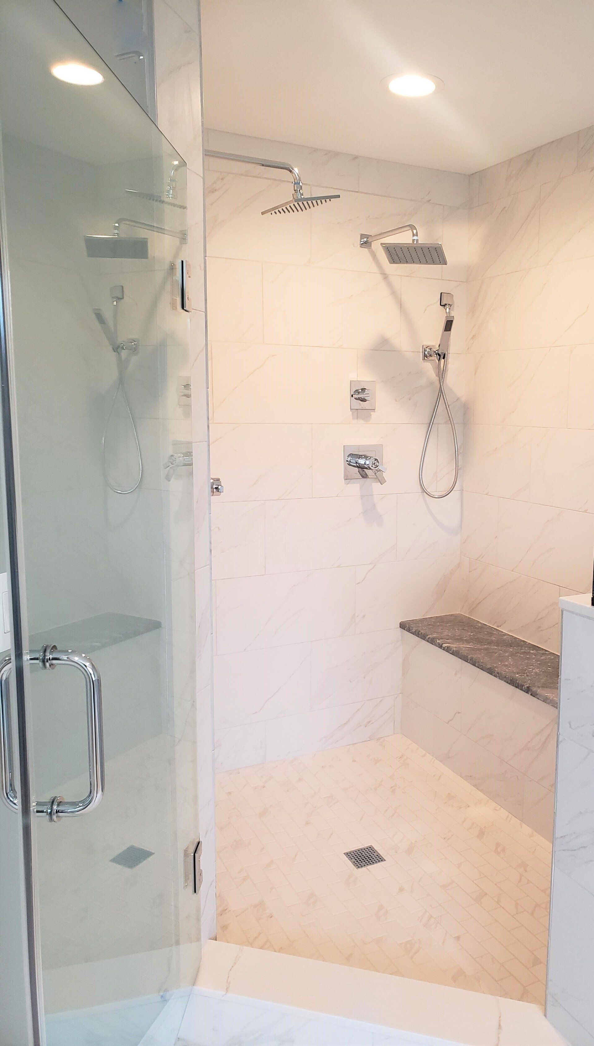 - Master suite bath with double vanity, generous shower with seat & compartmentalized toilet
